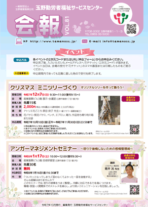 玉野勤労者福祉サービスセンターでは、会員の皆様に定期的に会報をお配りしております。イベント情報、チケット情報などお得な情報をお届けいたします。